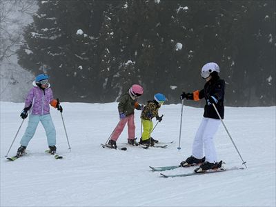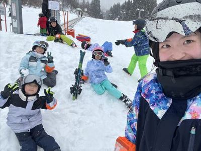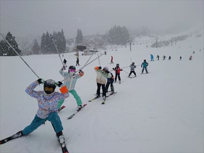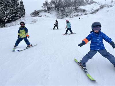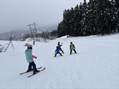 ちょっとお疲れの子もいますが、最後まで集中力が途切れないように楽しんで滑ってきます。