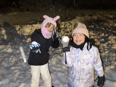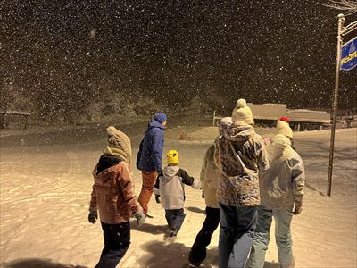 夜になると気温もぐっと下がってきて、ふわふわの雪へと変わってきました。