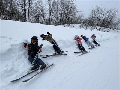 昨日は安定しなかった斜面でもスピードに乗れるようになっていたり、トレインもぶつかることなくコントロールして滑れるようになっていたりと、全員の成長を感じる1日になりました。