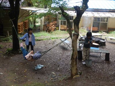 林の中に設置してあるブランコやハンモックももちろん大人気。