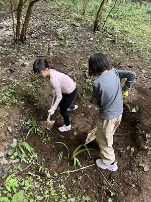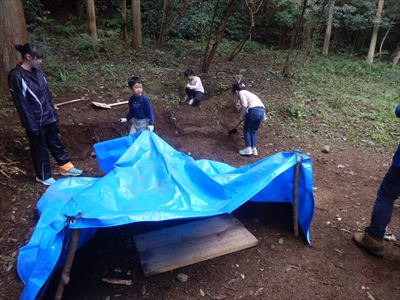 秘密基地を作るのにサイトの地ならしをしたり、穴を掘ったり会談を作ったり。