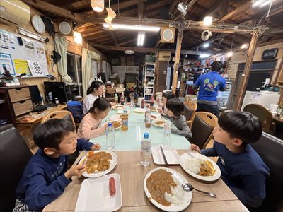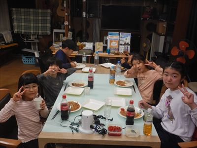 夕食が出来上がったので子どもたちを呼んで室内に移動。
