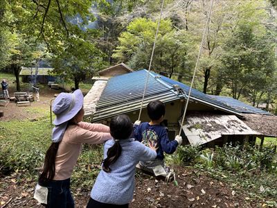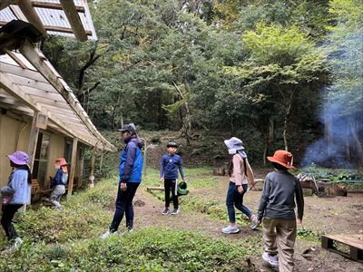ほっておくと延々に遊びそうな子どもたちを促して、小屋に戻ってお昼ご飯となりました。