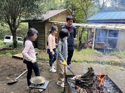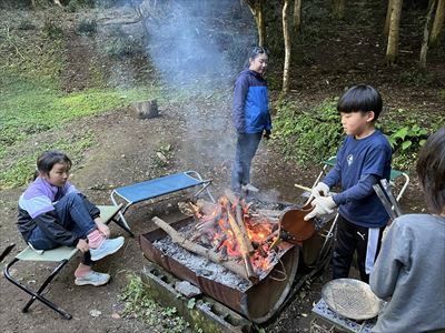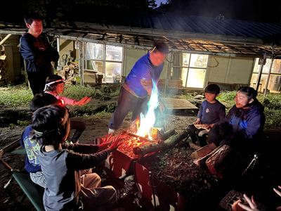 お風呂にお湯を張っている間に、ふたたび外に出て焚き火周りに集合。