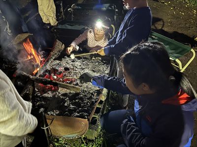 マシュマロをおいしくいただきながら、焚き火も楽しみました。